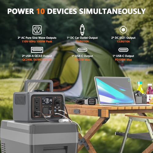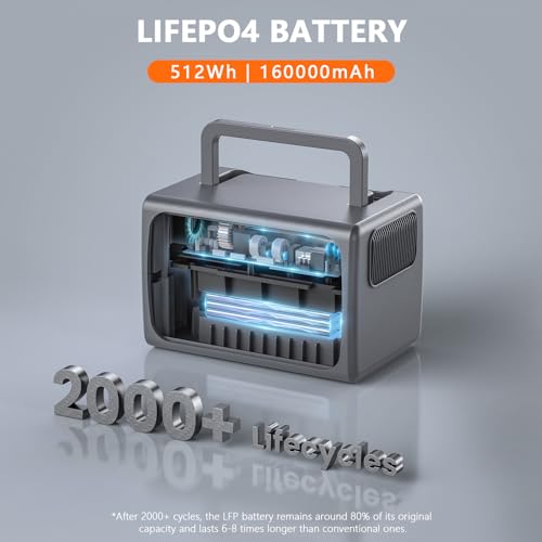 Specification: ALLWEI Portable Power Station 500W, 512Wh LiFePO4 Battery, UPS Function, 2.5Hrs Fast Charge, 2 AC Outlets(Surge 1000W), Solar Generator for Outdoor Camping RV CPAP Home Emergency