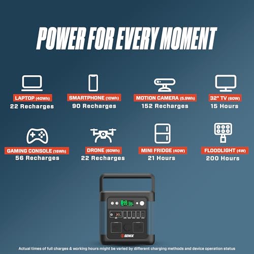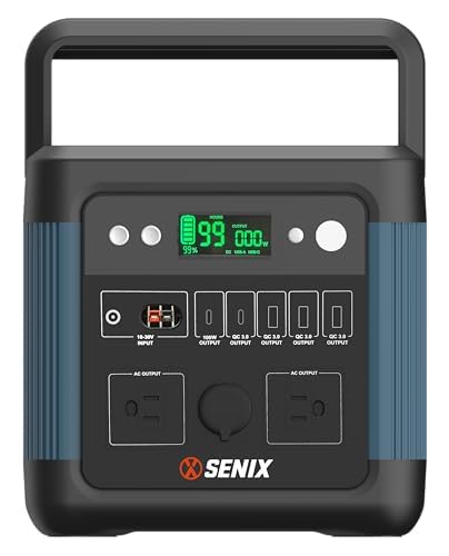 Specification: SENIX Portable Power Station 974Wh LiFePO4 Battery Powered, 1200W (2400 Peak), 120V AC Outlets, USB-A/C/USB-C Fast Charge, (Solar Panel Optional) 12V DC Car Charger Input for Camping, RVs (PS1200)